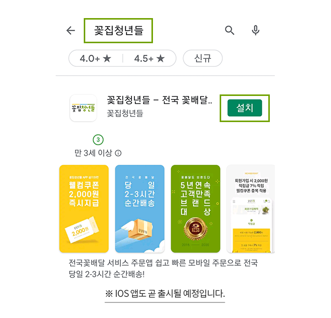 구글플레이에서 "꽃집청년들" 앱을 설치합니다.