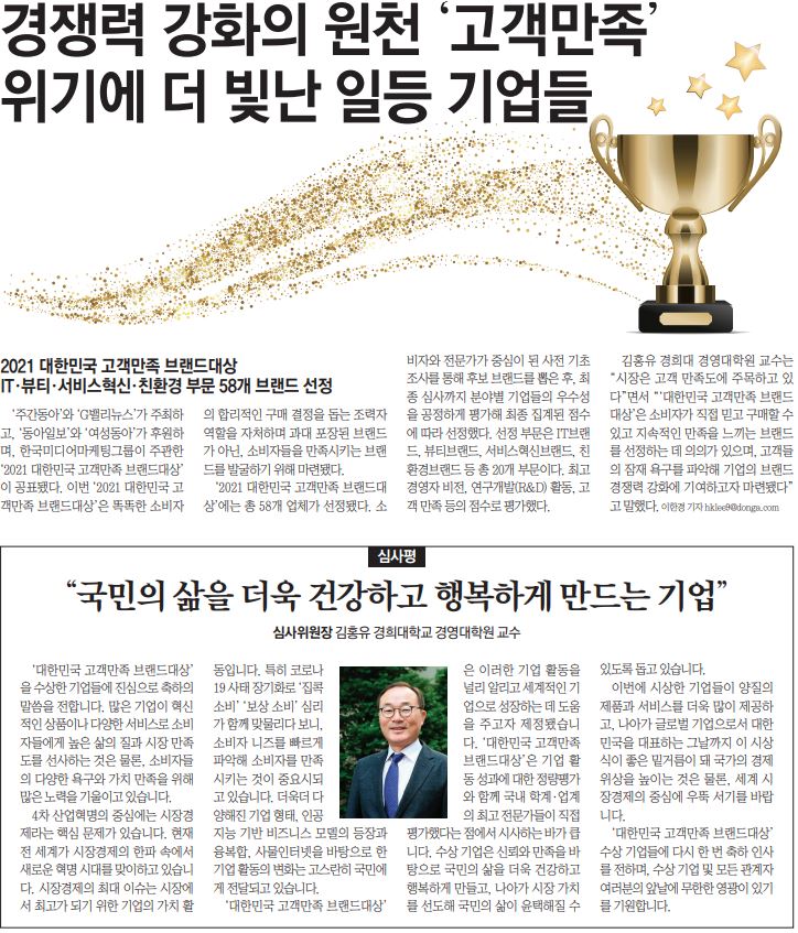 무엇보다 '2021 대한민국 고객만족 브랜드 대상' 은 똑똑한 소비자의 합리적인 구매 결정을 돕는 조력자 역할을 자처하며 과대 포장된 브랜드가 아닌, 소비자들을 만족시키는 브랜드를 발굴하기 위해 제정됐기 때문에 수상 이력이 더더욱 뿌듯할 따름입니다.