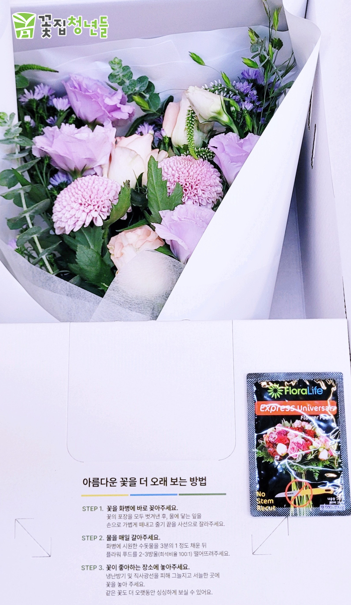 조금이라도 상하지 않게 꽃 전문박스에 소중히 담아 배송해 드렸어요.>