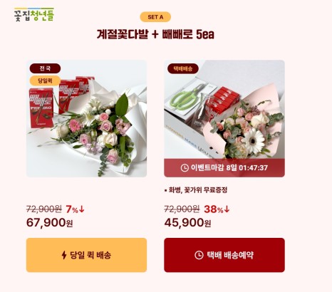 꽃다발을 당일 상품가격보다 저렴하게 꽃을 구매할 수 있어요.