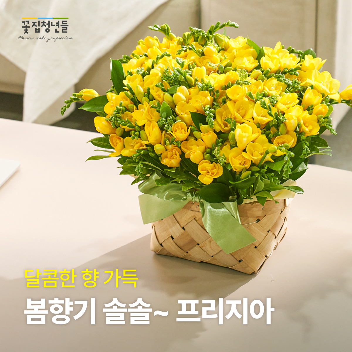프리지아는 봄에만 잠시 만나볼 수 있는 봄꽃이에요.