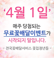 | [꽃집청년들]4월 1일 무료꽃배달이벤트 시작/4월이벤트 (0) | 2016.03.29 |